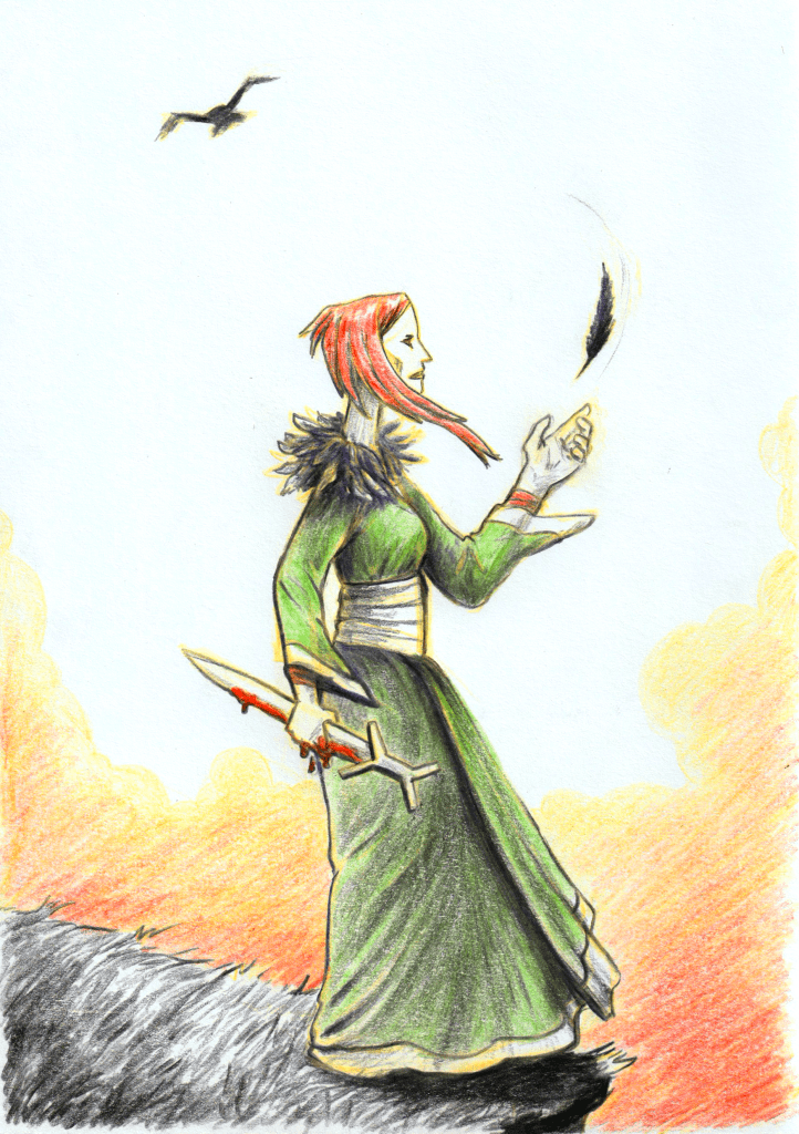 Morrígan est une déesse celtique irlandaise du Massacre et un personnage de la mythologie celtique irlandaise, qui semble avoir été considérée comme une déesse, même si elle n’est pas mentionnée explicitement ainsi dans les textes. Dans certains récits médiévaux, Morrigan fait partie du groupe des trois déesses de la guerre, aux côtés des déesses Badb et Macha, ou parfois Nemain. Dans d’autres récits, les noms Morrigan et Badb sont utilisés alternativement pour désigner la déesse irlandaise de la guerre, ou bien sont toutes deux décrites comme des sorcières des Tuatha Dé Danann .