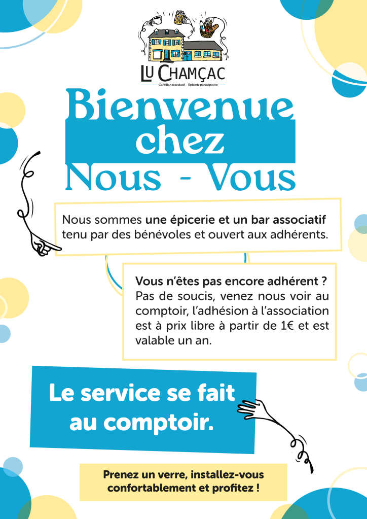 Création de l’identité visuelle (logo, illustrations, plaquette de présentation, affiches…) de l’association Lu Chamçac qui tient une épicerie et un bar associatif.