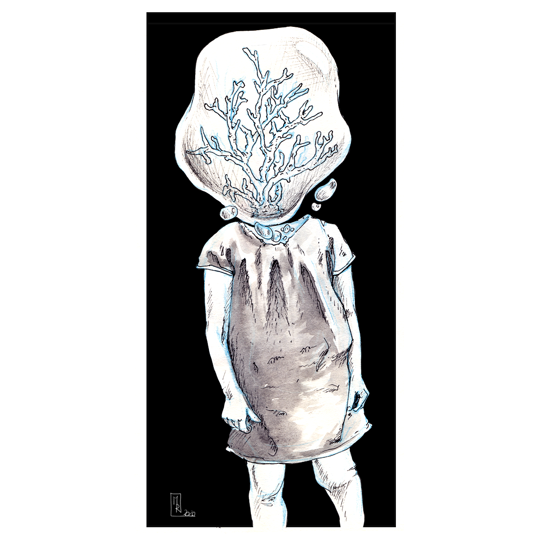 Ces illustrations ont été réalisées à l’encre de chine pendant le « inktober » 2020, un défi de dessin se déroulant pendant le mois d’octobre durant lequel une liste de mots est proposée et sert de base pour réaliser des illustrations. Un mot, un jour, un dessin, un portrait.